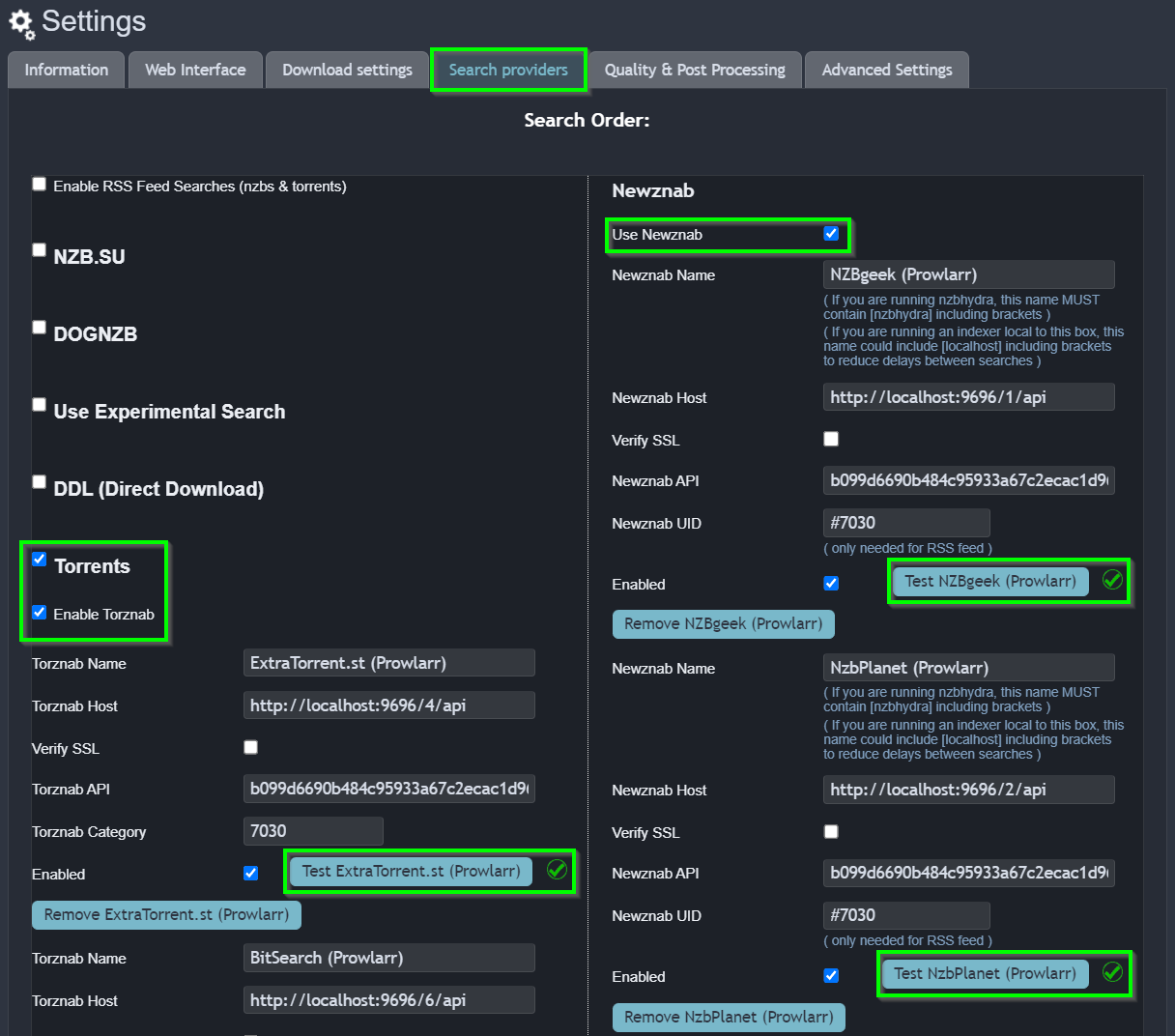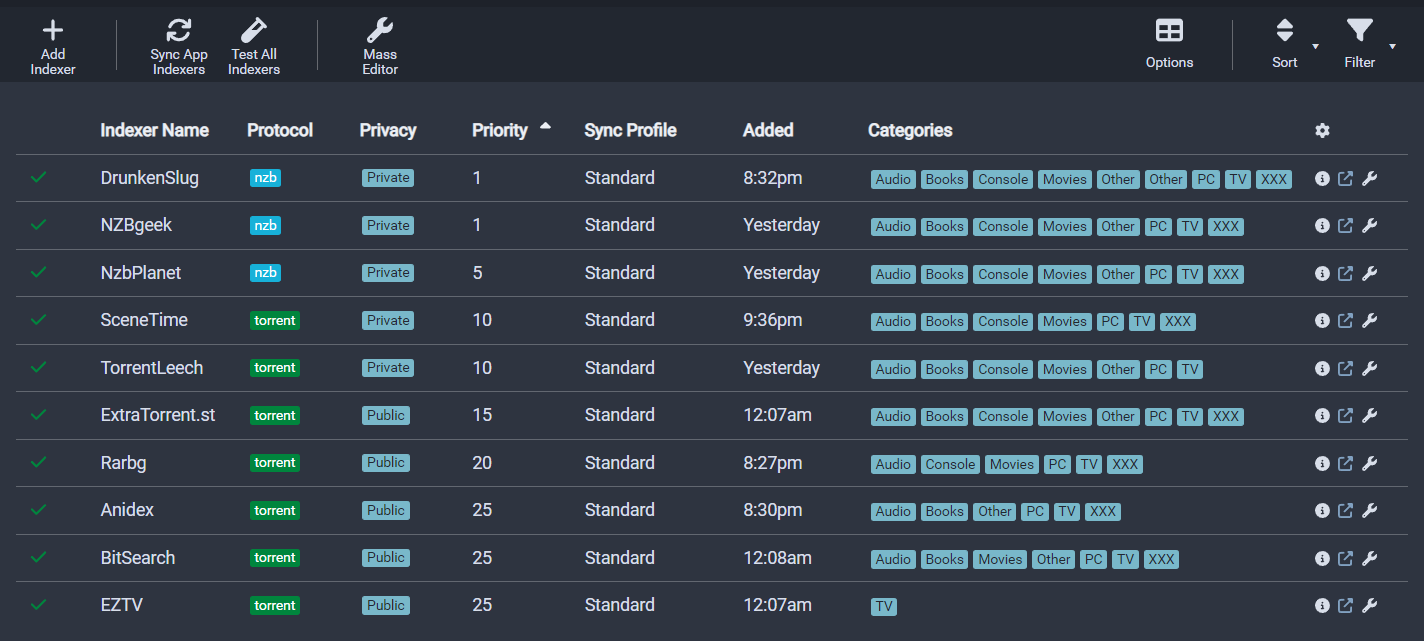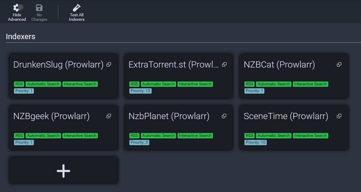 Test some of the imported Torrent and Usenet indexers, then select Save Changes at the bottom of the page.