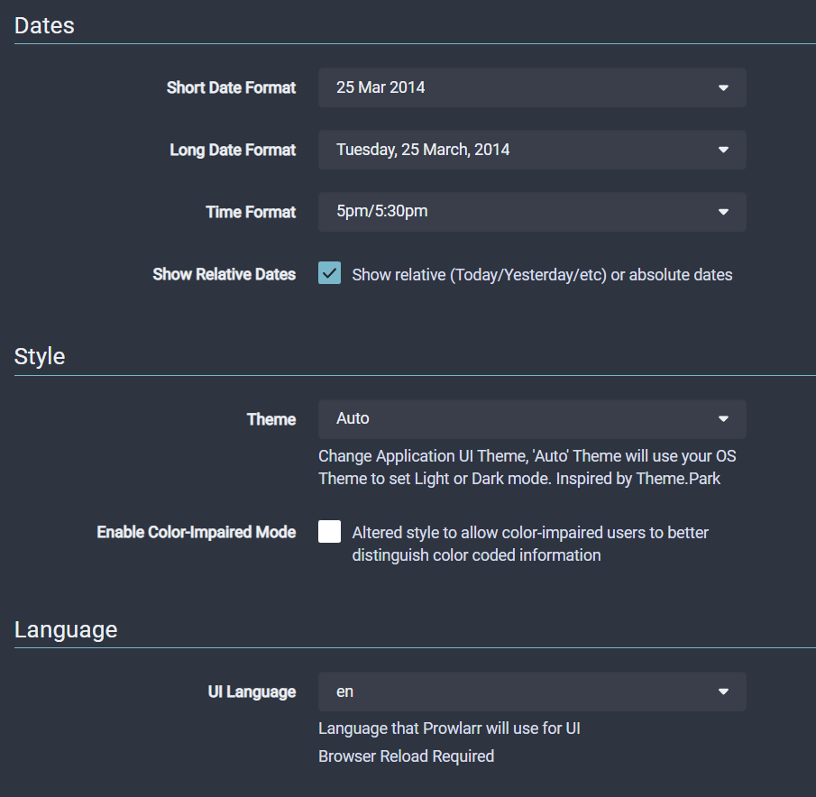 | Radarr | http://localhost:7878 | http://localhost:7878/settings/general |