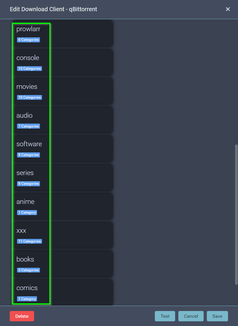 If you've already followed the qBittorent configuration guide, you may have already added the qBittorent download client to all of your *ARR Media Applications. However, Prowlarr needs to be configured with some additional settings, so you can automate downloading of certain media categories, into the correct download folders, so they are managed by the correct *ARR Media Library Managers.