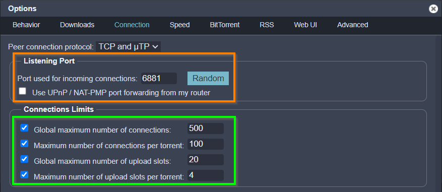 NOTE: Having too many peer connections and concurrent download sessions may be very ineffficient, and slow down your overall completion rate.