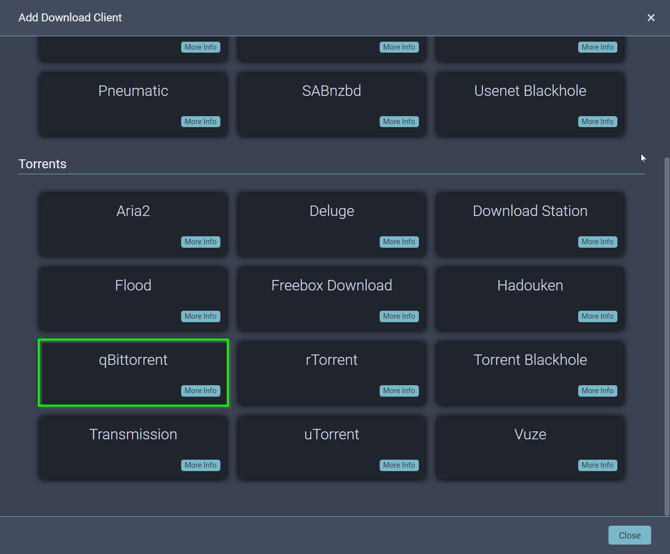 | Sonarr: | http://localhost:8989/settings/downloadclients | series |