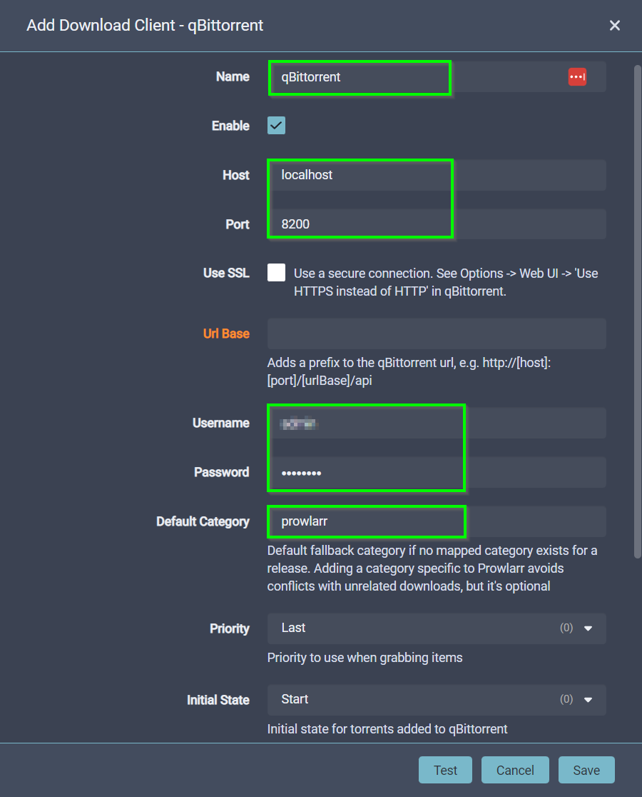 | Prowlarr: | http://localhost:9696/settings/downloadclients | prowlarr |