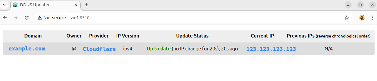 The DDNS-Updater web portal should now show you the updated IP addresses: