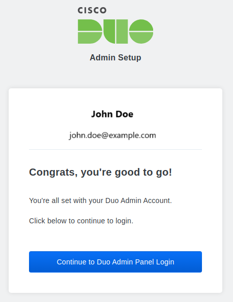 You will be shown the following message after successfully linking your DUO Security phone app to your DUO Admin Portal.