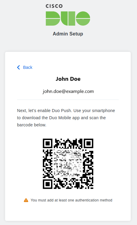 After registering for a DUO Security account, you will need to check your emails to verify the account, and to scan the QR Code to set up the Administration account for DUO.