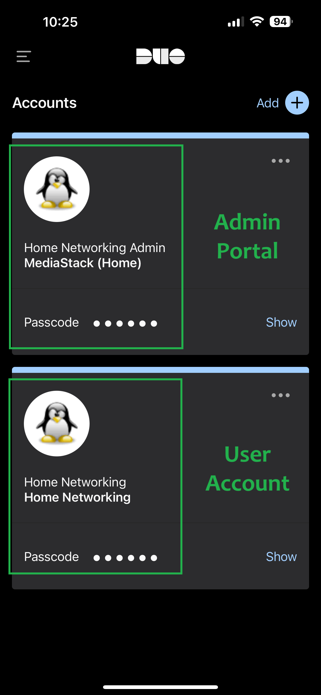 The owner of the DUO Security admin portal will have a Token installed for when logging into the portal, and a second Token if they have registered for a basic user account, for remote access to your MediaStack environment.